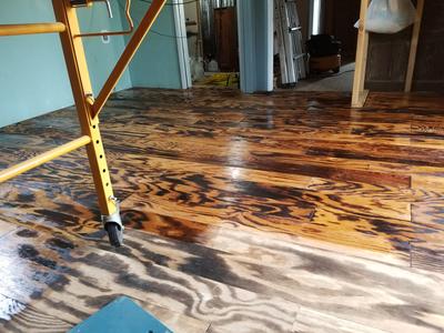 torch burnt plywood floor